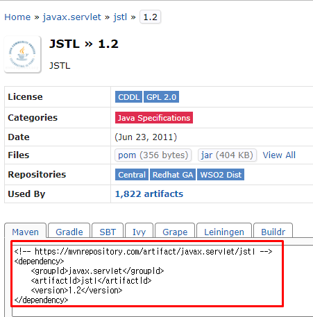 jstl도 추가를 해줍니다. jsp에서 기존의 스클립틀릿 태그보다 좋은 가독성뿐만 아니라 작업능률을 늘려 작업하기 쉽게 도와줍니다.