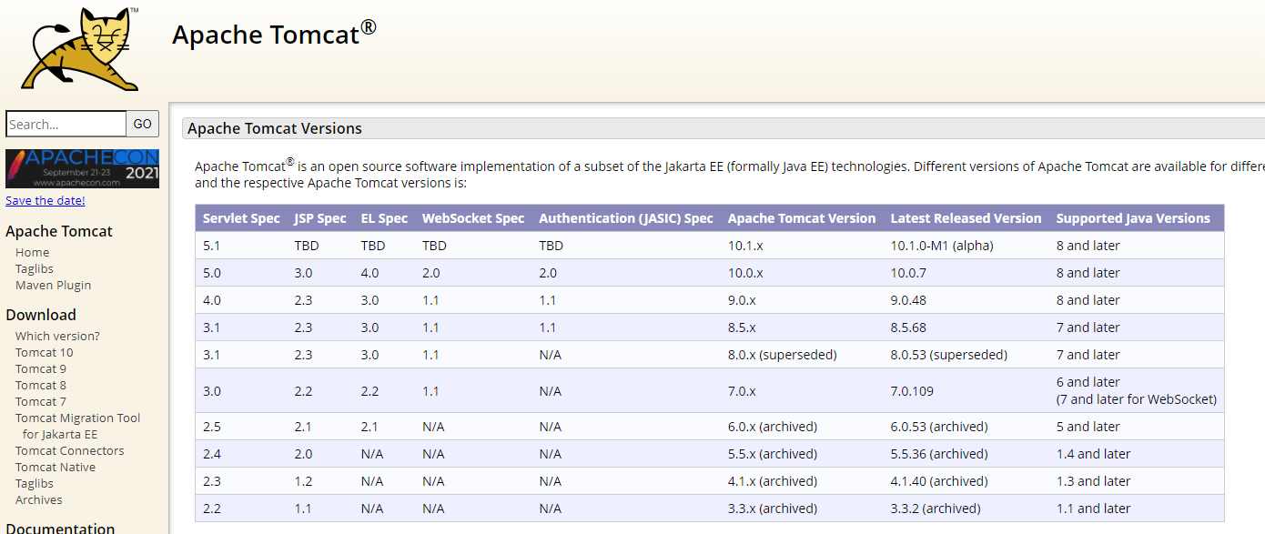 자바 버전은 톰캣 버전과 호환이 되어야 합니다. 만약에 개발을 다 끝내고 카페 24에 배포를 하는데, 그 사이트에서 제공해주는 서비스의 톰캣 버전이 내가 개발한 자바 버전이 호환이 되지 않는다면 배포가 되지 않기 때문에 정말 힘들겠죠? 그전에 서버와 지금 개발하고 있는 자바 버전이 호환되는지 알아야 합니다.