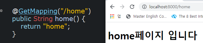 RestController는 리턴을 메시지로 합니다.(json으로 리턴하게 만들어짐)