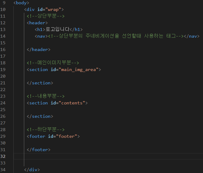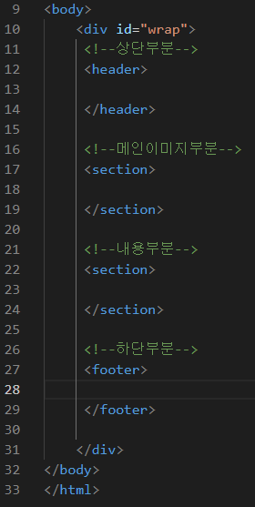 그렇기 때문에 header와 session 그리고 footer를 나누어 주면 한눈에 보기에 정말 편하겠죠?
