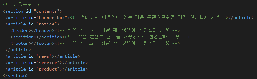 예를 들면 article은 작은 웹 영역이 하나 더 생긴다고 생각하면 편한데요,