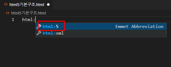 html:5를 선택하여 기본 설정값들을 바로 불러옵니다.