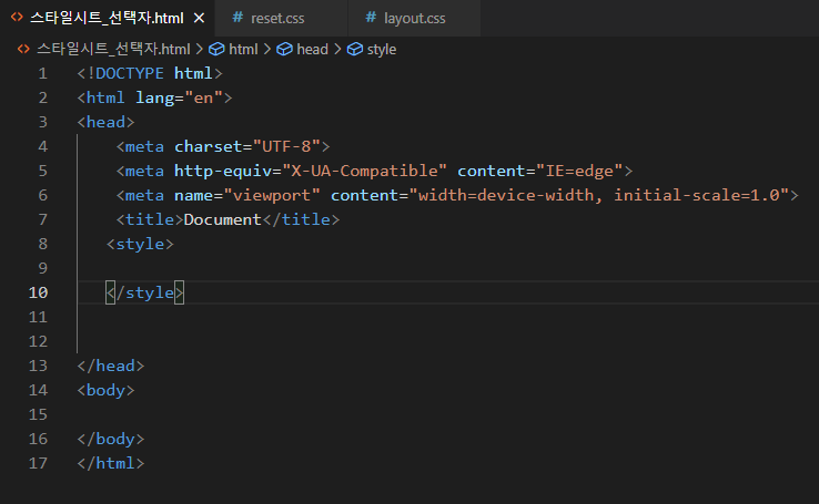 '스타일시트_선택자. html' 파일을 만들어줍니다.