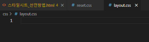 내부 폴더에 css폴더를 만들고 reset.css와 layout.css를 만듭니다.