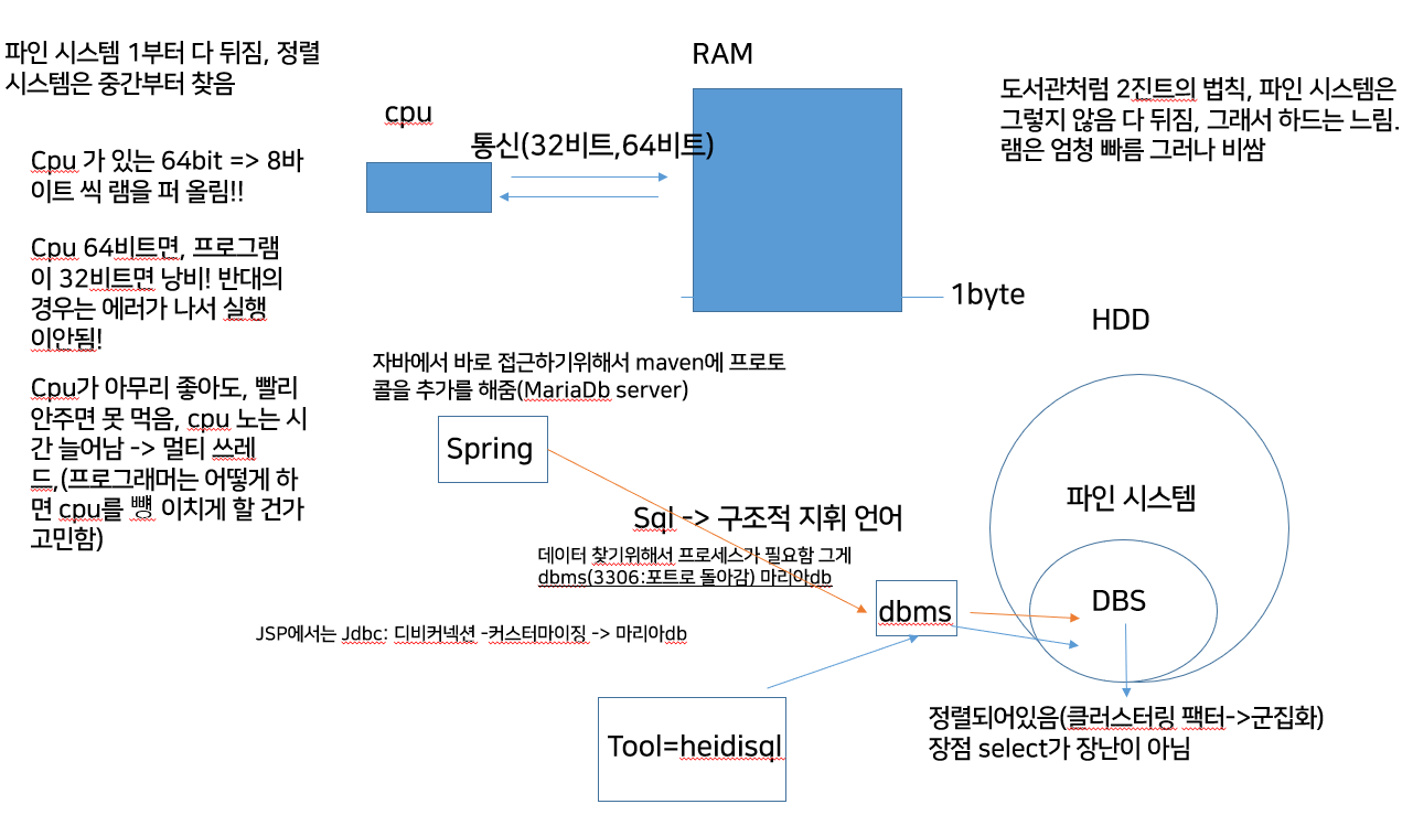 JSP는 jdbc를 요구를 하죠, 바로 여기(마리아 DB)에 접근하려는 Connection의 역할을 jdbc가 하기 때문입니다.