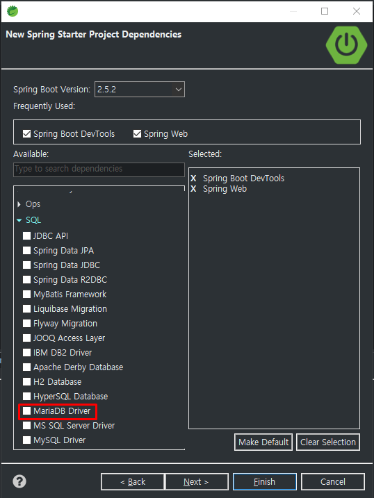 마리아 DB를 연결해주는 jdbc.driver 추가