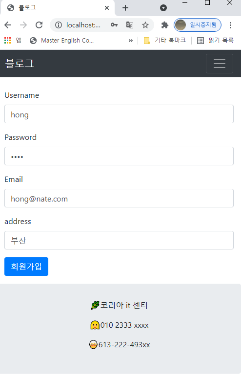 각각의 요소에 입력값을 넣고 회원가입 버튼을 눌러줍니다.