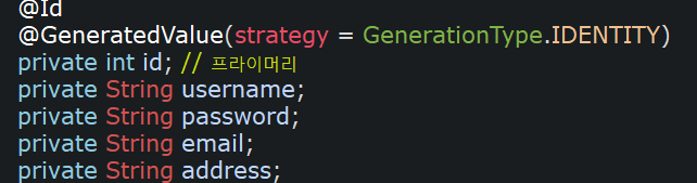 user의 address를 받아오기 위해서 User 클래스에 가서 수정을 하고