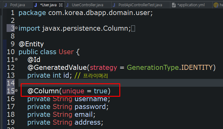 아래처럼 post클래스에서 user_id를 삭제합니다