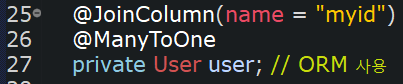 User 객체를 ORM(Object Relationship Mapping) 합니다.