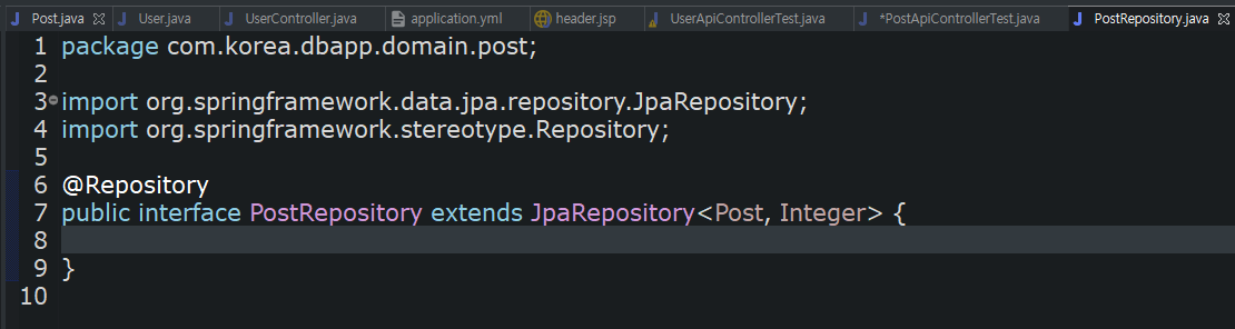 PostRepository는 Jpa를 extends 하기 때문에 기본적인 JPA가 담겨 있습니다.