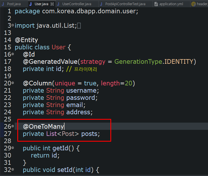 그래야 JPA나 DB나 posts에 접근 가능합니다.