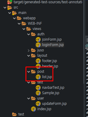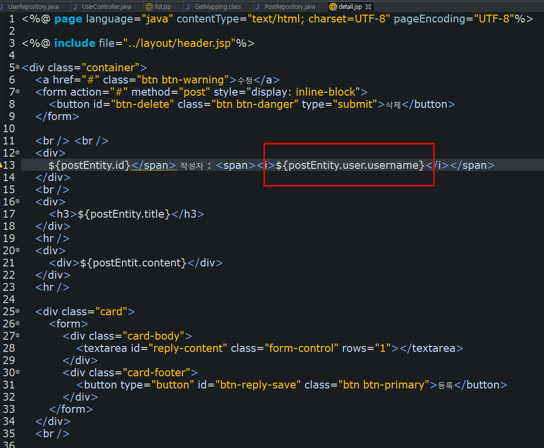 list.jsp에서 아까 추가해준 PostController에서 model에 담아온 PostEntity를