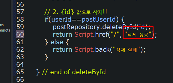 즉, script문으로 반환을 하려면 @ResponseBody를 써야 한다는 것이죠.