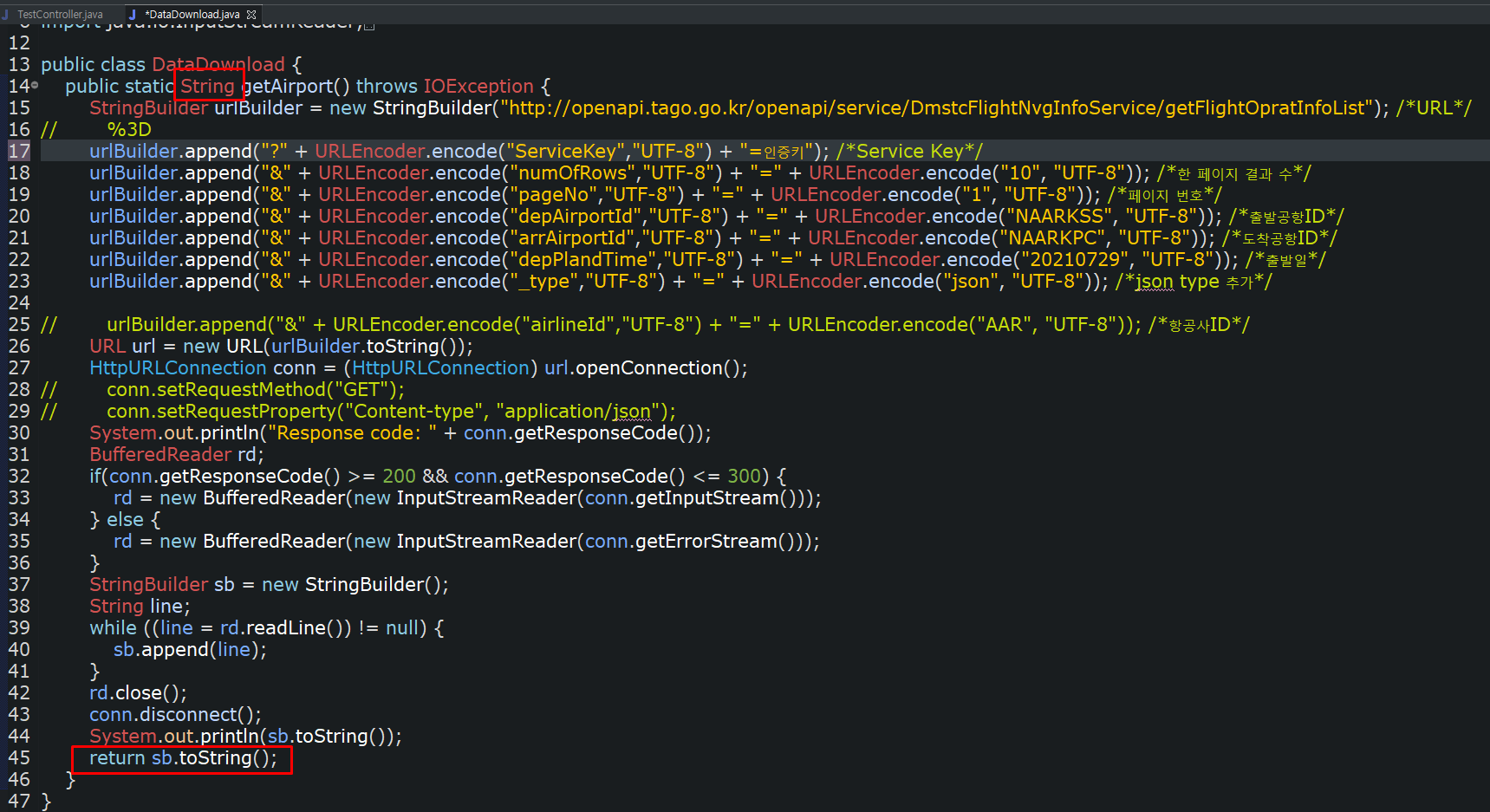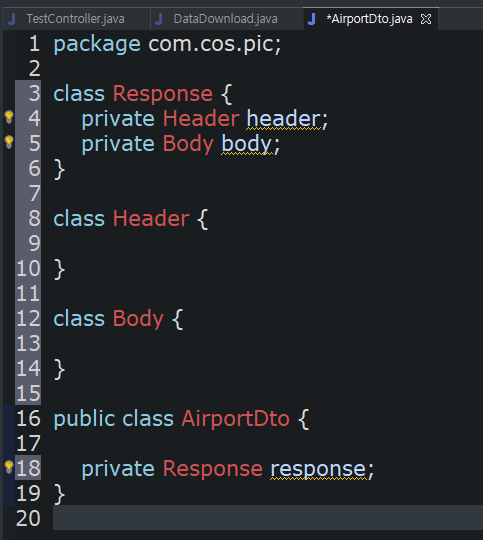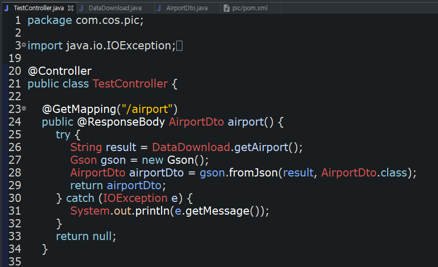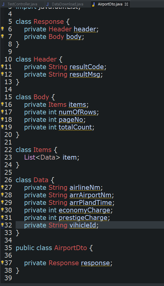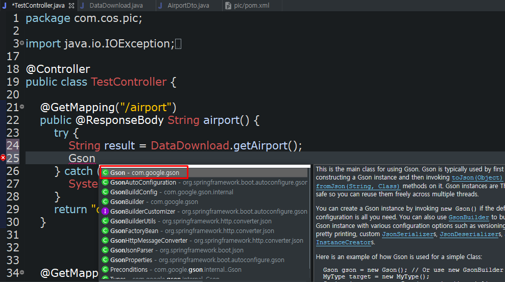 json 객체를 자바 object로 변환해서 AirportDto 타입인 airportDto에 넣어줍니다.