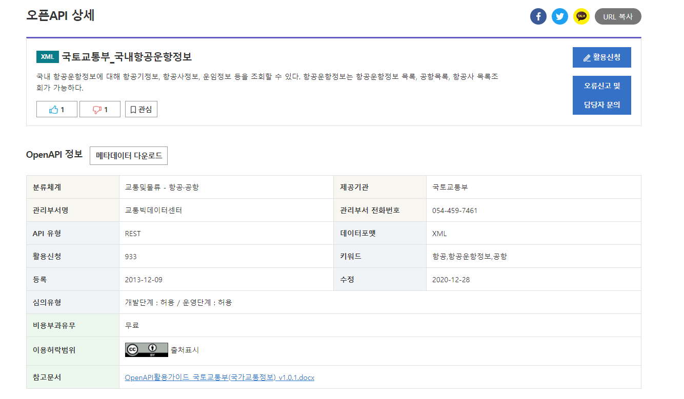 국내 항공운항정보에 대해 항공기정보, 항공사정보, 운임정보 등을 조회할 수 있다. 항공운항정보는 항공운항정보 목록, 공항목록, 항공사 목록조회가 가능하다.