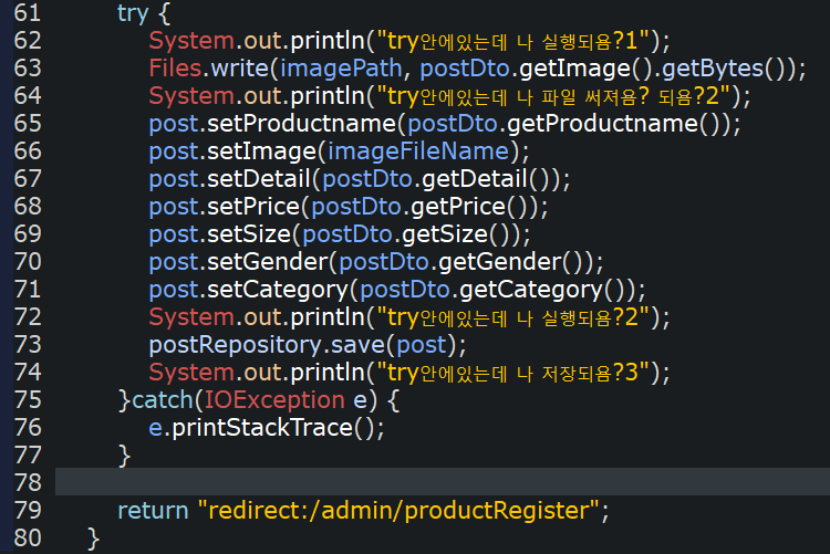 망할, 집에서 하니까 상품등록이 안돼서 보니 경로가 잘못 잡혀있었네요...