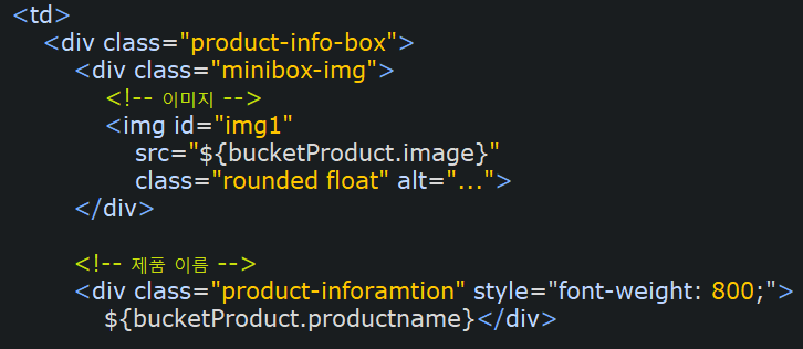 알고 보니 제가 데이터를 장바구니 View단에 뿌려줄 때