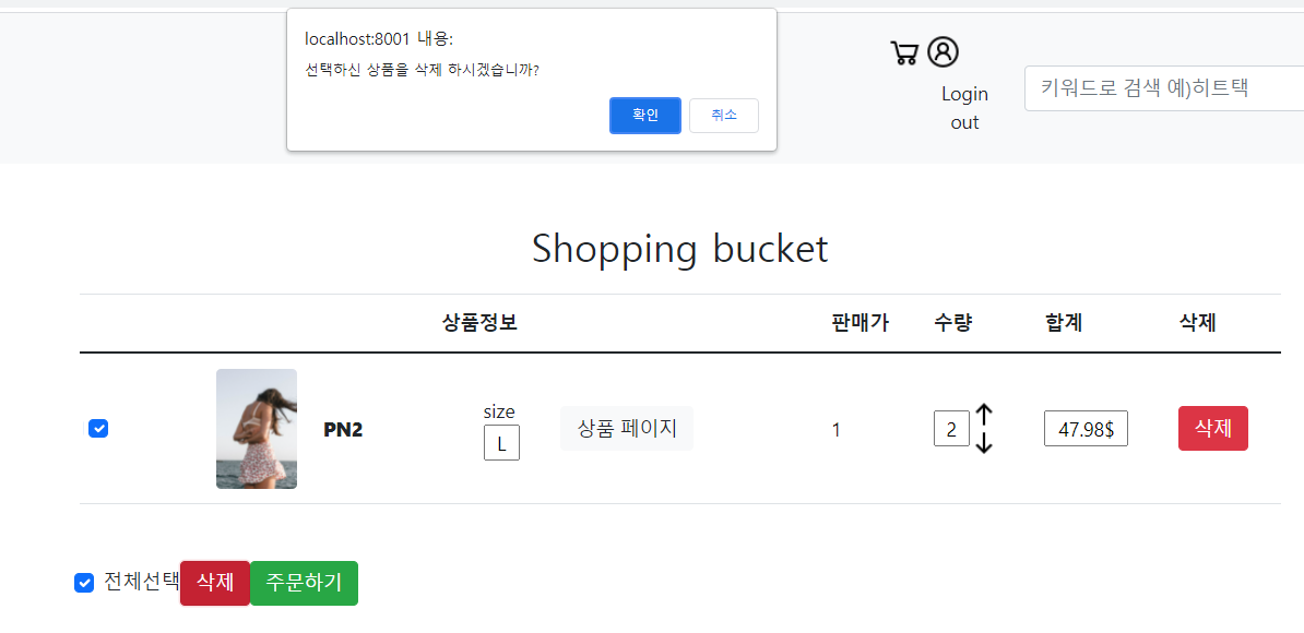 기존의 장바구니에서 상품이 선택이 되지 않아도 confirm문이 실행되어서