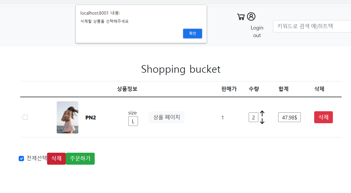 1. 상품이 바구니에 있고 상품을 선택하지 않았을 때