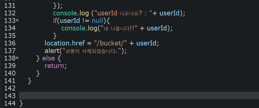 1. 기존의 파라미터 값, userId값이 if문의 분기가 늘어나면서 userId가 undefined로 되는 것을