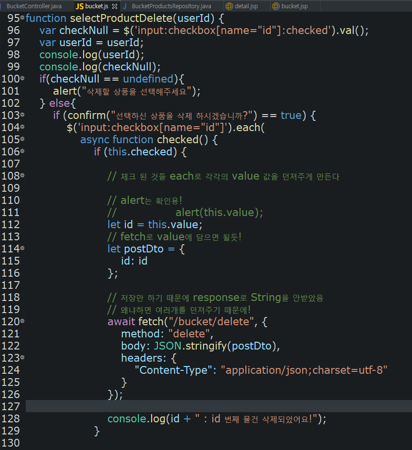 2. 선택하지 않으면 선택하라는 메시지를 건네주기 위해 위와 같이 분기를 만들어 주었습니다.