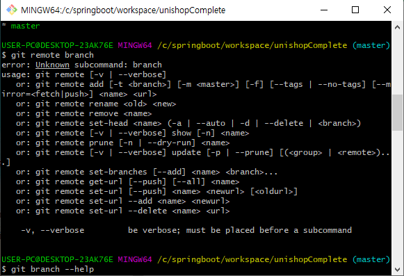 git branch 브랜치 확인 후
