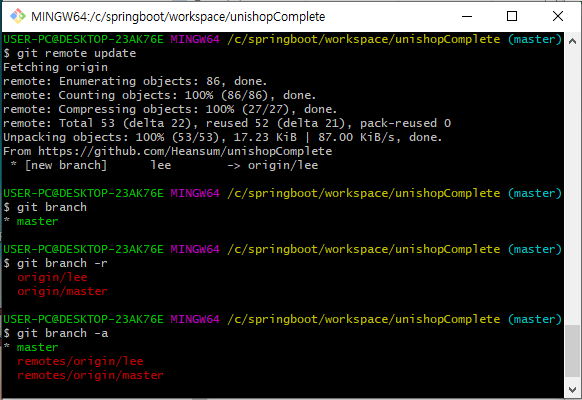 -> remote branch를 모두 확인해줍니다.
