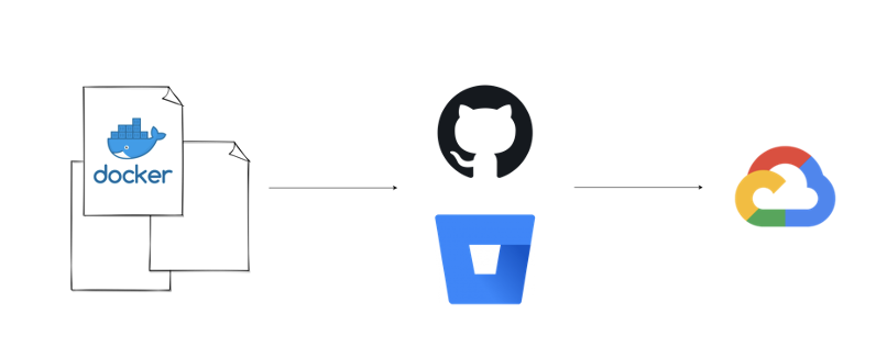 처리되는 과정은 이미지와 같습니다. Github나 Bitbucket의 Branch에 push 된 소스를 기반으로 도커 이미지를 자동으로 빌드하는 것이죠.