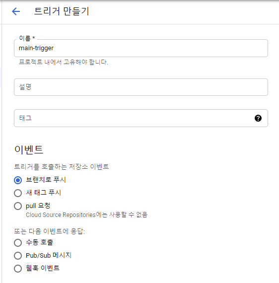 - 트리거 생성 및 저장소 연결