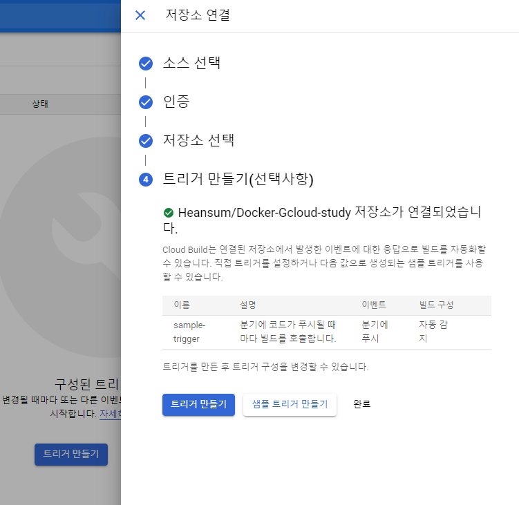 트리거 생성 및 저장소 연결