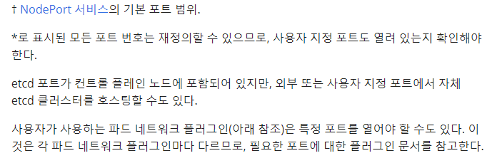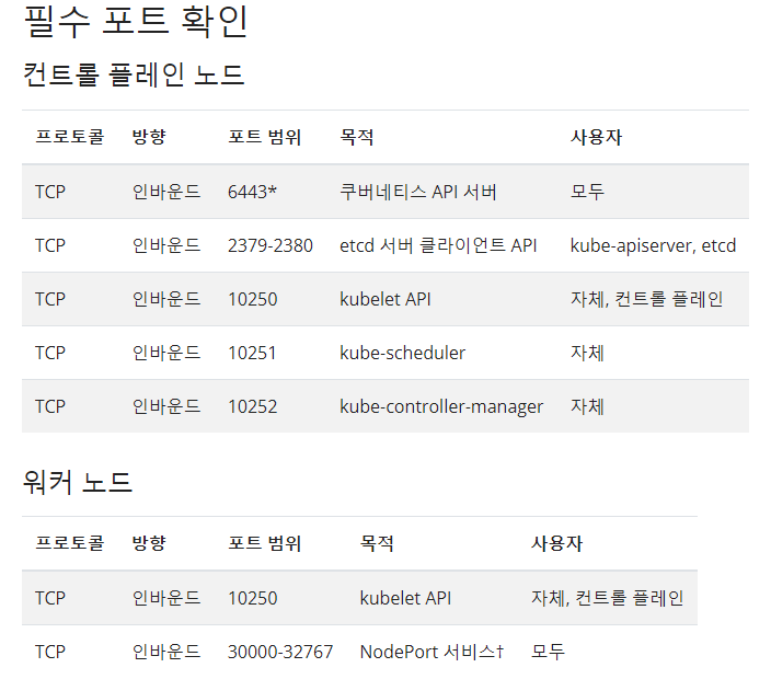 - 외부에서 쿠버네티스 API를 접근 시 6443 포트 사용