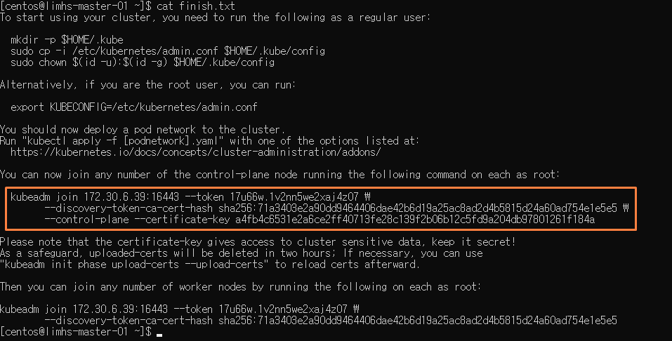 master-01 노드에 있었던 명령어를 복사해서