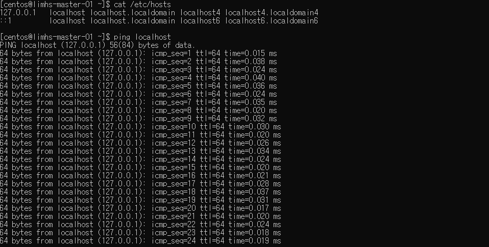 [전체 노드] # hostname 으로 hostname 확인 후 /etc/hosts 에 반영 (worker도)