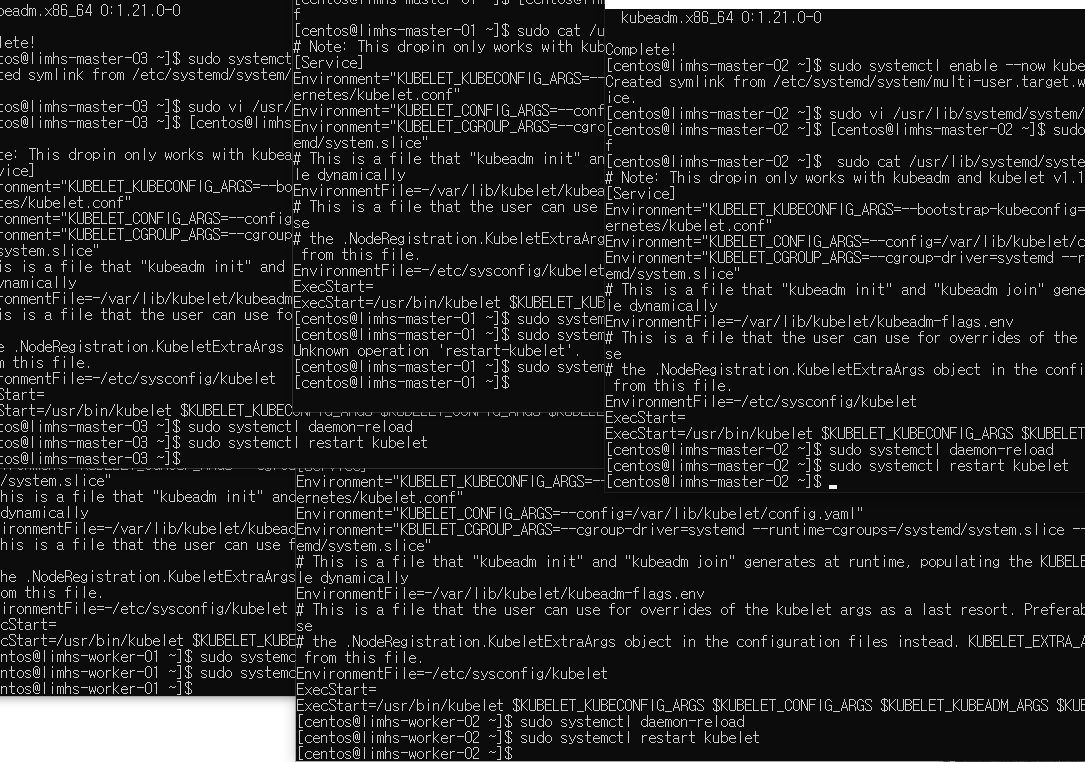 daemon reload, kubelet restart 수행.(모든 노드)