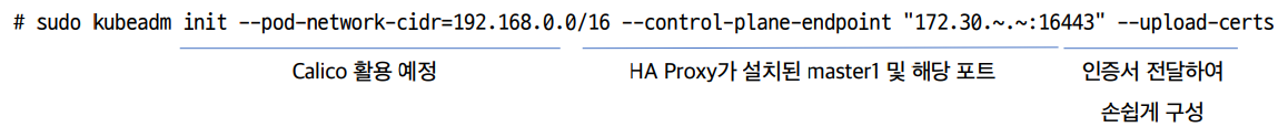 sudo kubeadm init --control-plane-endpoint "LOAD_BALANCER_DNS:LOAD_BALANCER_PORT" --upload-certs