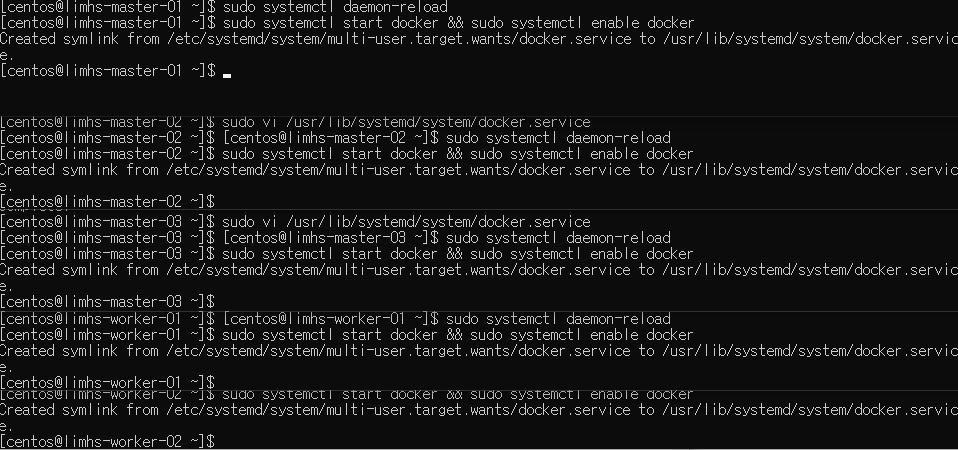 (start : 프로세스 실행 , enable : 도커를 저절로 실행되게 끔 자동실행)