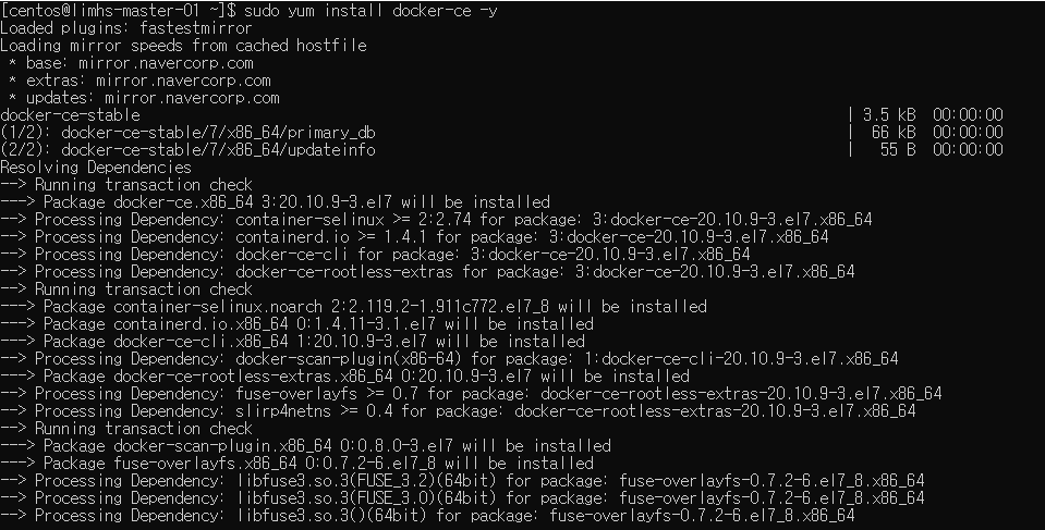 # sudo yum install docker-ce -y