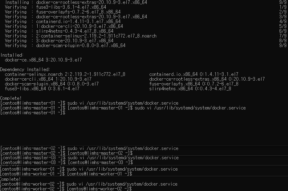 - [전체 노드] CRI (Container runtime interface) 설치 필요 : Docker 설치/시작