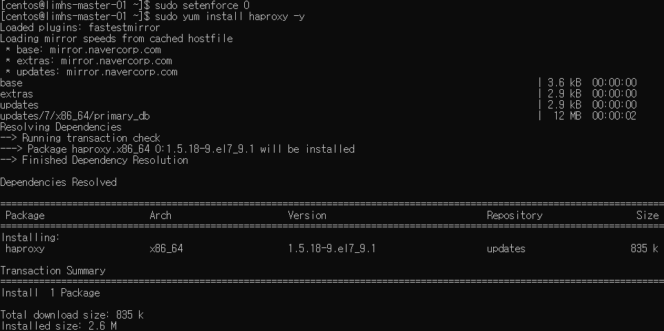 # sudo yum install haproxy -y