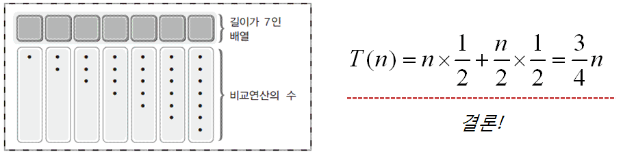 가정 2에 의해서 탐색 대상이 존재하는 경우의 연산 횟수는 n/2