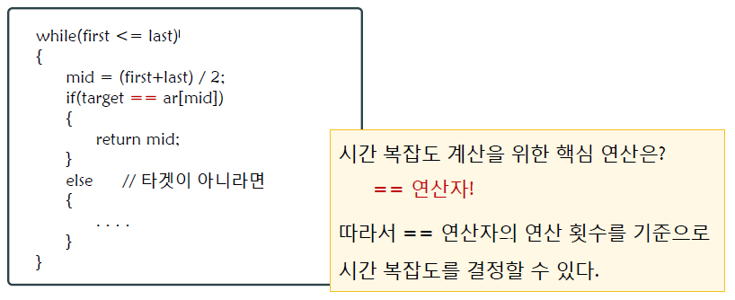 if(target == ar[mid]) // 중앙에 저장된 것이 타겟이라면