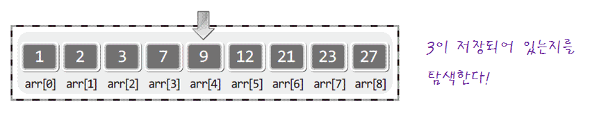 1. arr[4]에 저장된 값 9와 탐색 대상인 3의 대소를 비교한다.