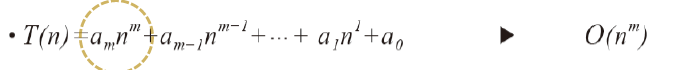 - T(n)이 다항식으로 표현이 된 경우, 최고차 항의 차수가 빅-오가 된다.