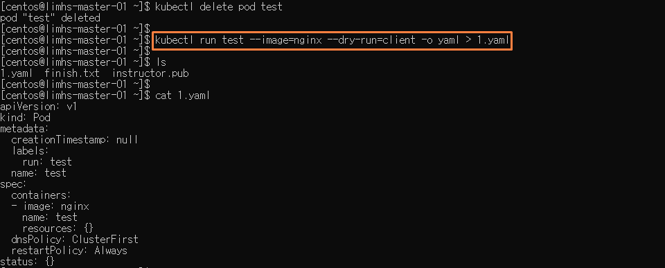 kubectl run test --image=nginx --dry-run=client -o yaml > 1.yaml