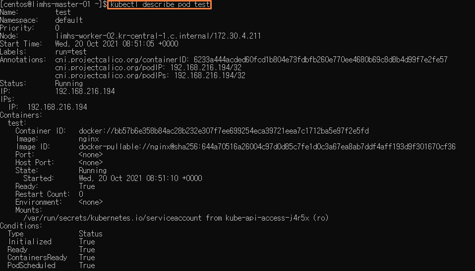 지금 pod가 할당된 NODE도 확인할 수 있습니다.