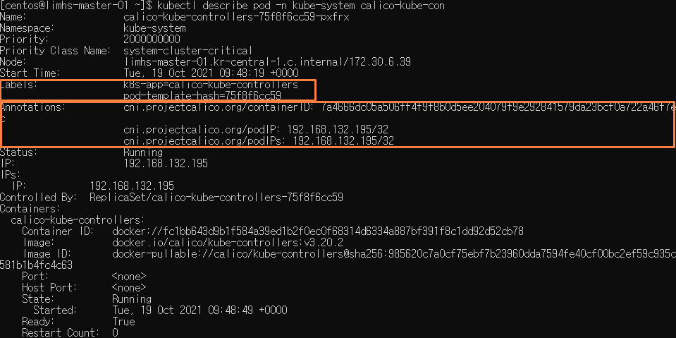 kubectl describe pod -n Kube-system calico-kube-con 로 확인