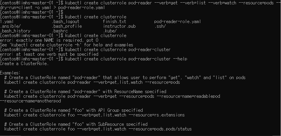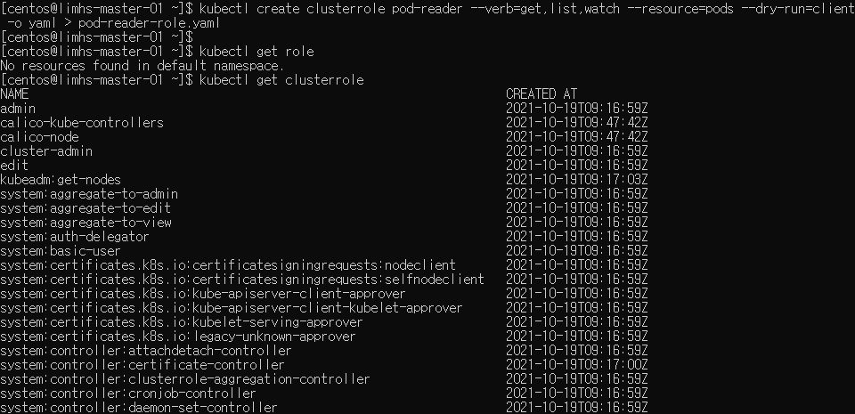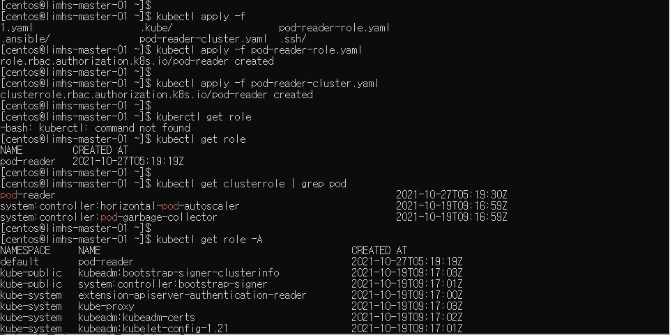 kubectl get clusterrole | grep pod 로 pod 확인