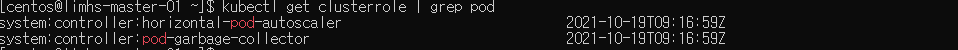 kubectl get clusterrole | grep pod로 확인